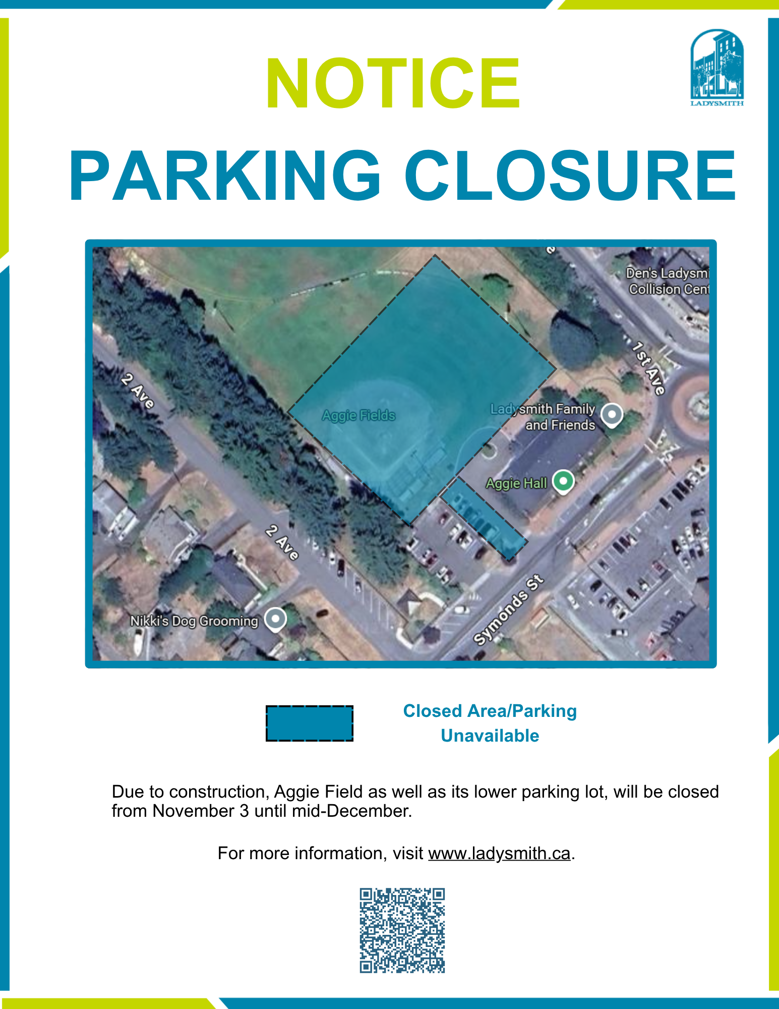 Ladysmith, BC – Work is set to begin on the Aggie Field Drainage Project on Monday, November 3, 2025.