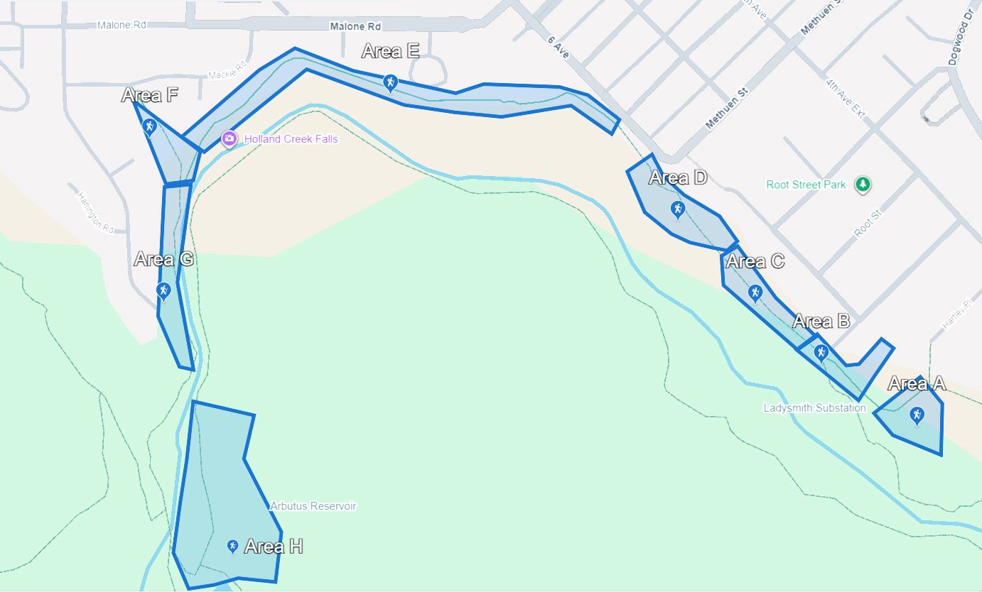 Ladysmith, BC — Emergency Management Cowichan (EM Cowichan) will be conducting wildfire risk-reduction work along the lower Holland Creek Trail from November 10 to November 28.