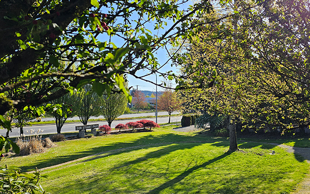 Bob Stuart Park, located at the north entrance of 1st Avenue behind the Ladysmith sign, is named in honour of former mayor R.W. (Bob) Stuart, who served from 1977 to 1978. Pedestrians can access the park from the sidewalks on 1st Avenue and the Trans-Canada Highway. Parking is available behind the Ladysmith Archives.
