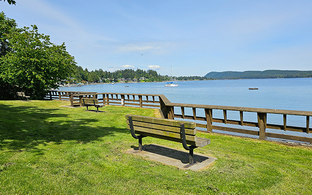 This pretty hillside neighbourhood park, which overlooks the Ladysmith harbour, features a lovely garden that is maintained by the Saltair Gardening Club. Pedestrians can access the park from either 1st Avenue or Baden-Powell Street, where parking is also available.