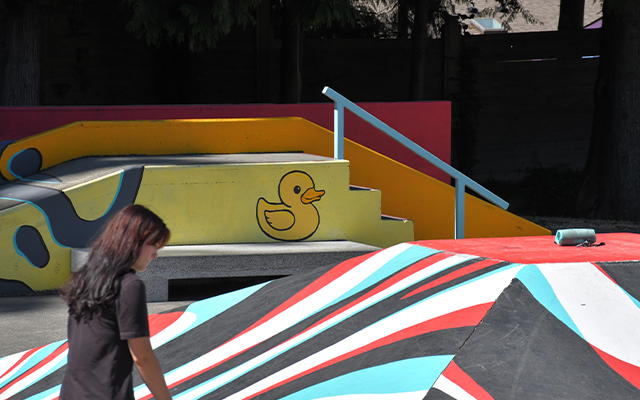 First opened in 1999, the Ladysmith Skatepark is located adjacent to the Frank Jameson Community Centre and has 1/4 pipes, pyramids, stairs, funbox rails and more.