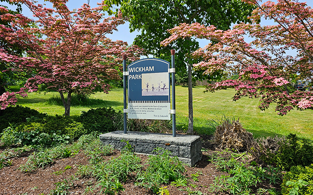 Donated to the Town by Dr. Tom and Wilma Wickham in 2008, Wickham Park is primarily an open green space with a small garden.